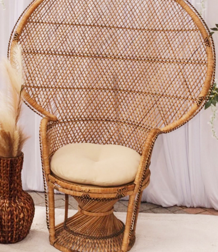 Our large wicker chair is a baby shower favorite! However it can make the perfect addition to a bridal shower or birthday backdrop! Comes with a light tan cushion to ensure comfort. Cushion color can be changed per request.